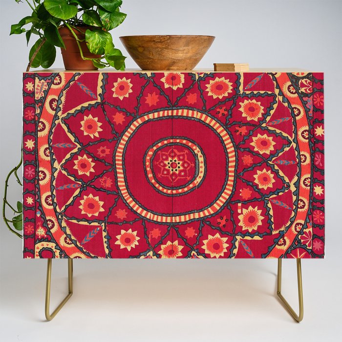 Palm Springs Mid-Century Modern Abstract Pattern In Light And Dark Mustard, Gray, And White On Navy Blue Credenza