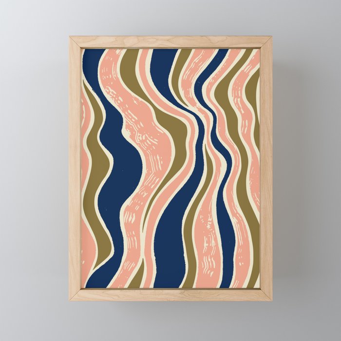 Joseph Stripes Ii Midcentury Modern Stripe Pattern In Mid Mod Mustard, Olive, Turquoise Teal, Orange Mini Art Print