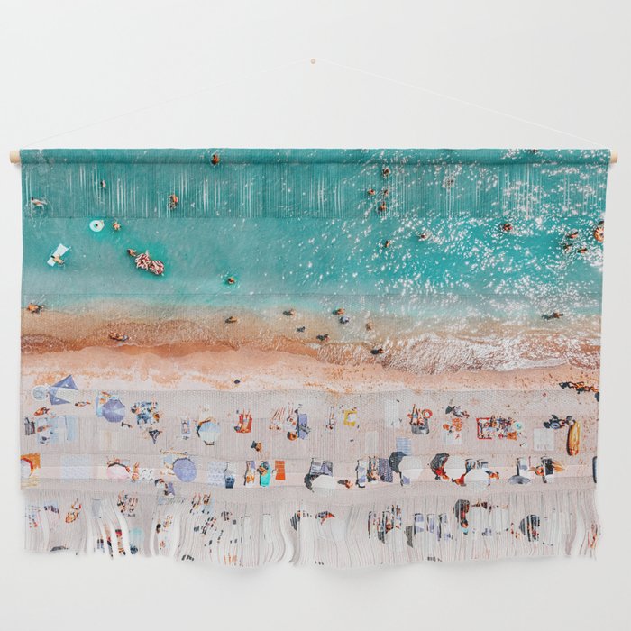 Beach Vibes, Umbrellas Print, Ocean Sea Beach People Print, Aerial Beach Summer Art Print, Aerial Photography, Summer Vibes Coastal Art Wall Hanging