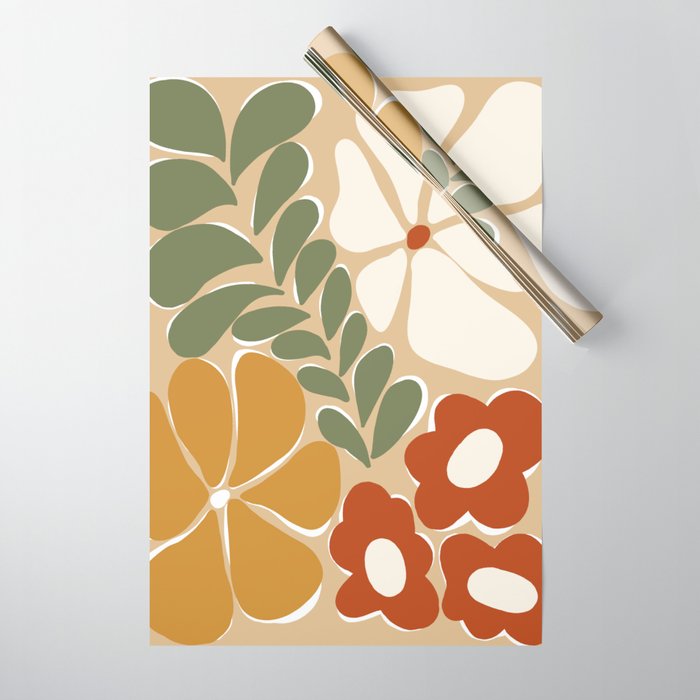 70s Boho Botanical Flowers Wrapping Paper