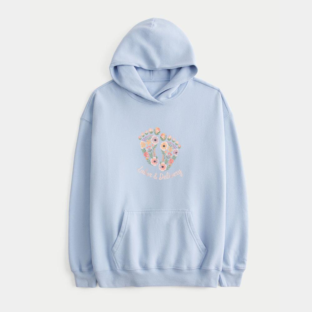 Labor And Delivery Nurse Cute Flowers Foot Prints Nurses Tee