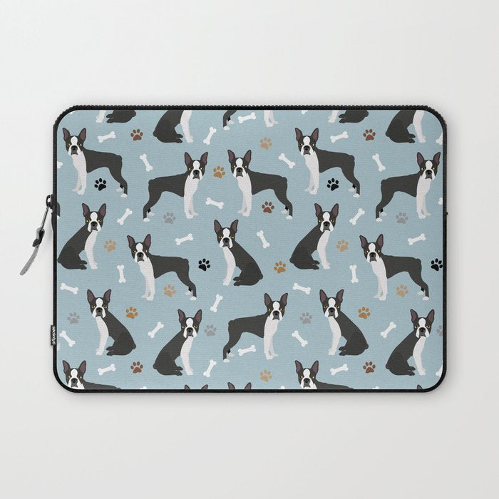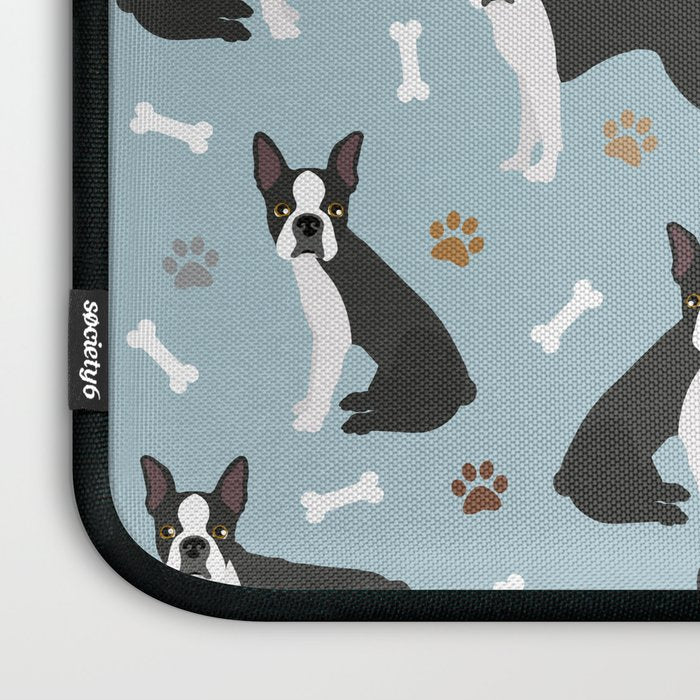Boston Terrier Dogs Pattern Blue Laptop Sleeve