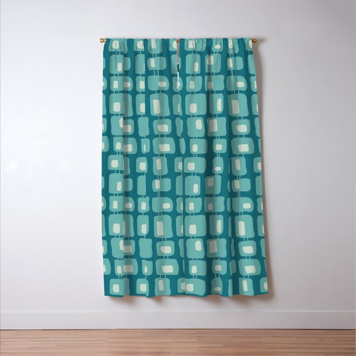 Funky Squares Retro Pattern Teal And Aqua Window Curtain