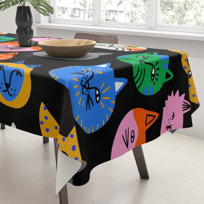 Funny Colorful Cat Cartoon Pattern Tablecloth