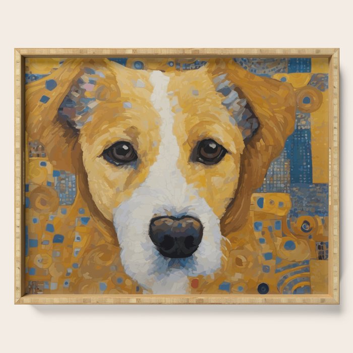 Gustav Klimt Style Dog With Blue And Gold Patterns Serving Tray