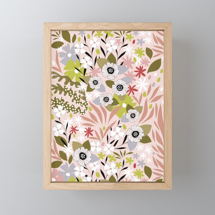 Maximalist Boho Floral Pattern 2. Olive & Blush Mini Art Print