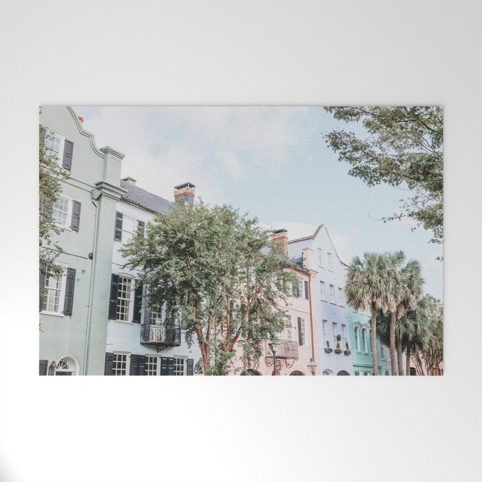 Rainbow Row No. 1 Colorful Charleston Photography Welcome Mat