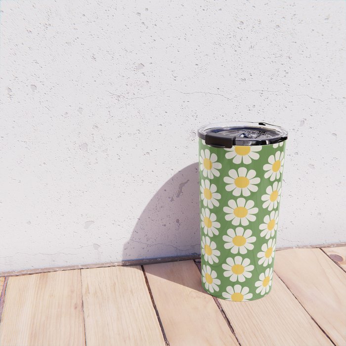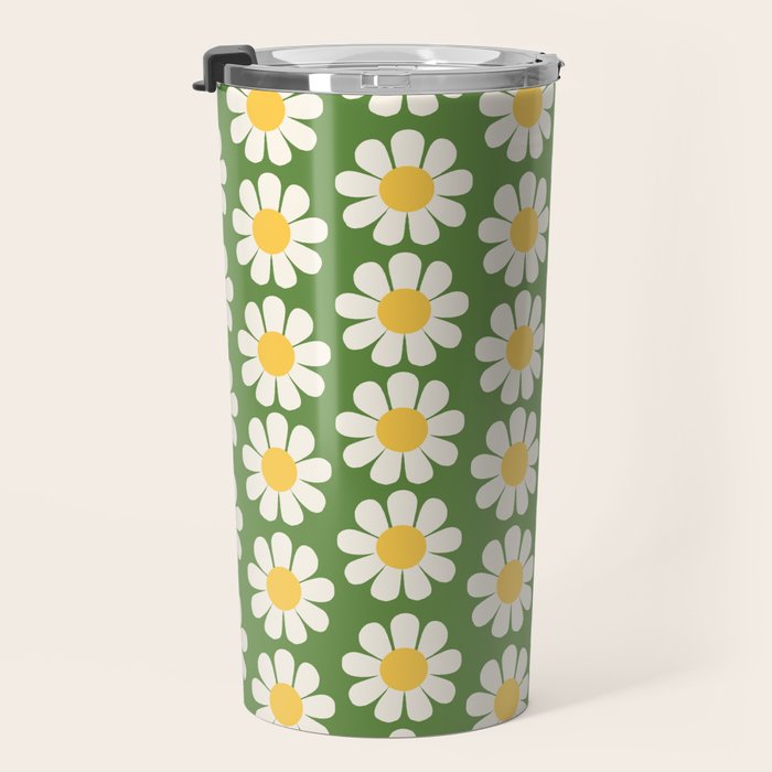 Retro Green Daisy Pattern Travel Mug