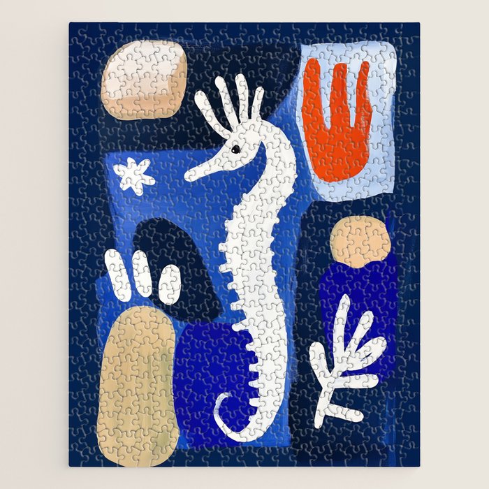 Sea Horse Abstract Ocean Coastal Blue Art Painting Jigsaw Puzzle
