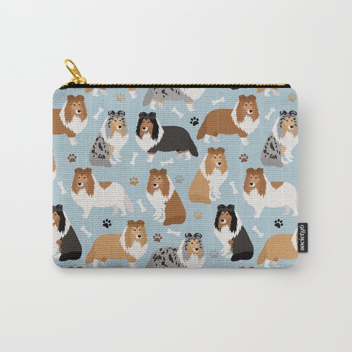 Shetland Sheepdog Sheltie Dog Paws And Bones Pattern Carry All Pouch