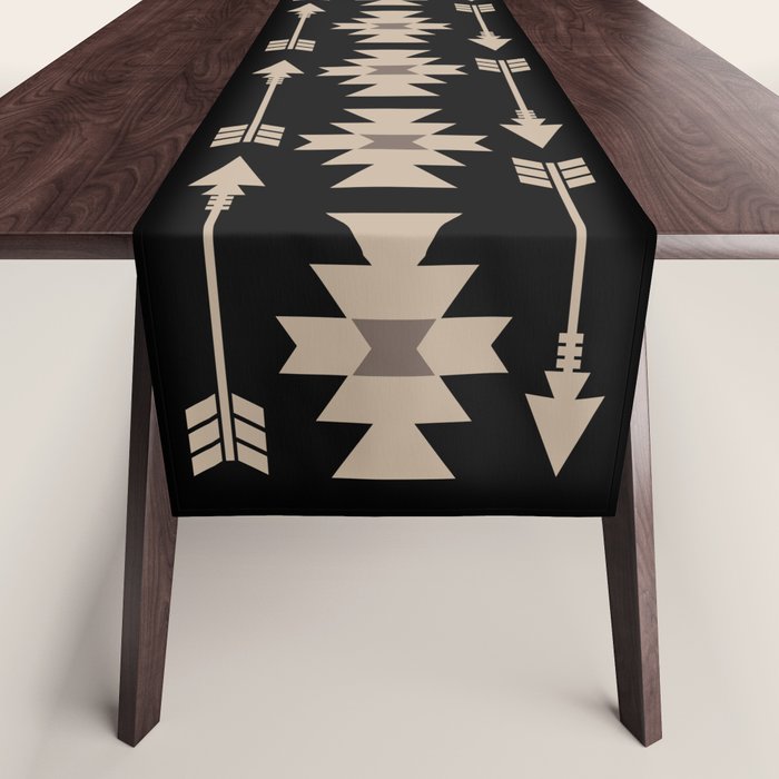 Southwestern Arrow Pattern 233 Black And Beige Table Runner