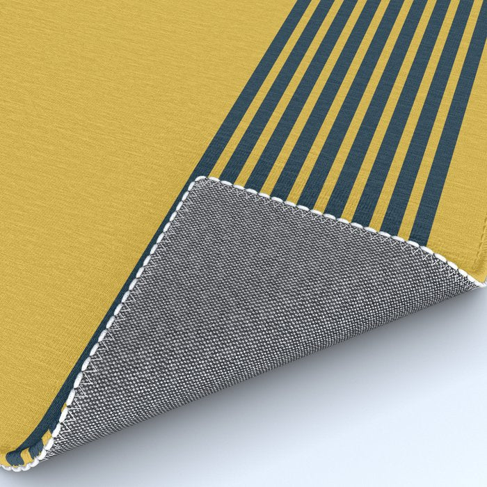 Cuff Stripe Minimalist Pattern  - Navy Blue Stripes On Light Mustard Yellow Solid Rug