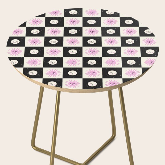 Sun & Moon Checkered Pattern Black & Cream Side Table