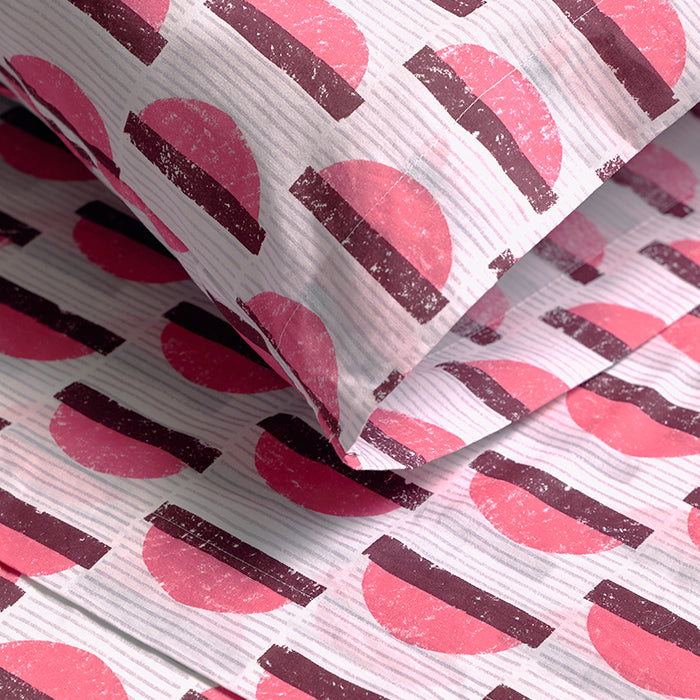 Our new patterned sheet set collection, printed on 100% super-soft brushed cotton, features exclusive mix-and-match designs by independent artists. The percale weave ensures strength and durability, while providing a matte appearance and crisp feel that gets even softer with each wash.
