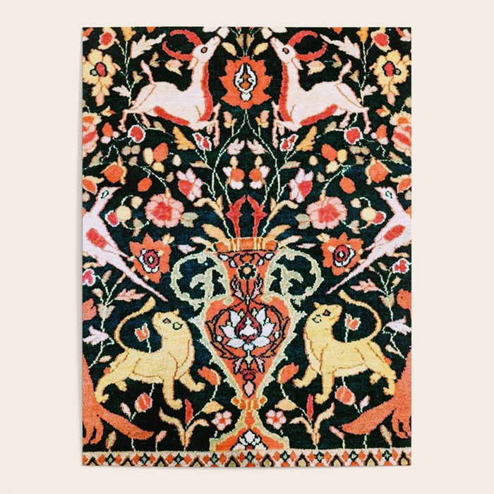 Vase Birds Animals Persian Rug Print Poster