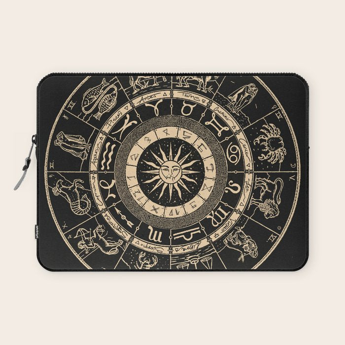 Vintage Zodiac & Astrology Chart | Charcoal & Gold Laptop Sleeve
